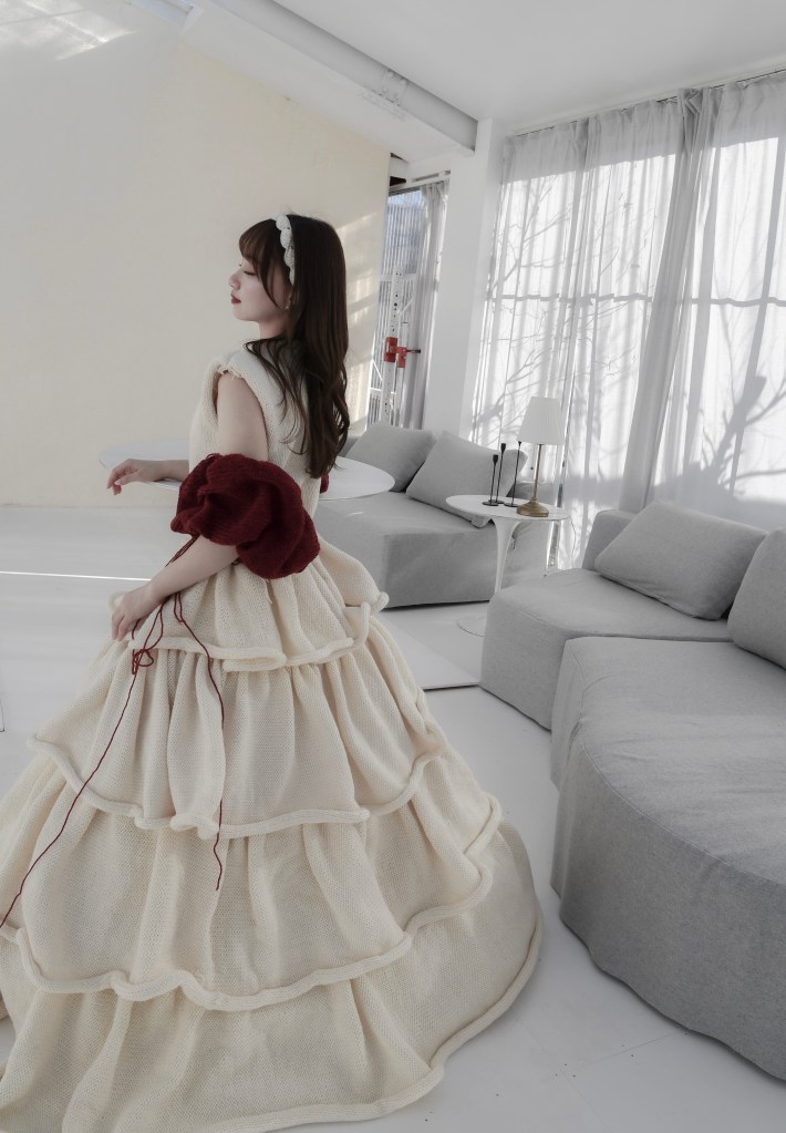 ニットの丸まる特性を活かしたドレスです。上下がセパレートしている為、ドレスとしてもスカートのみのご利用も可能です。