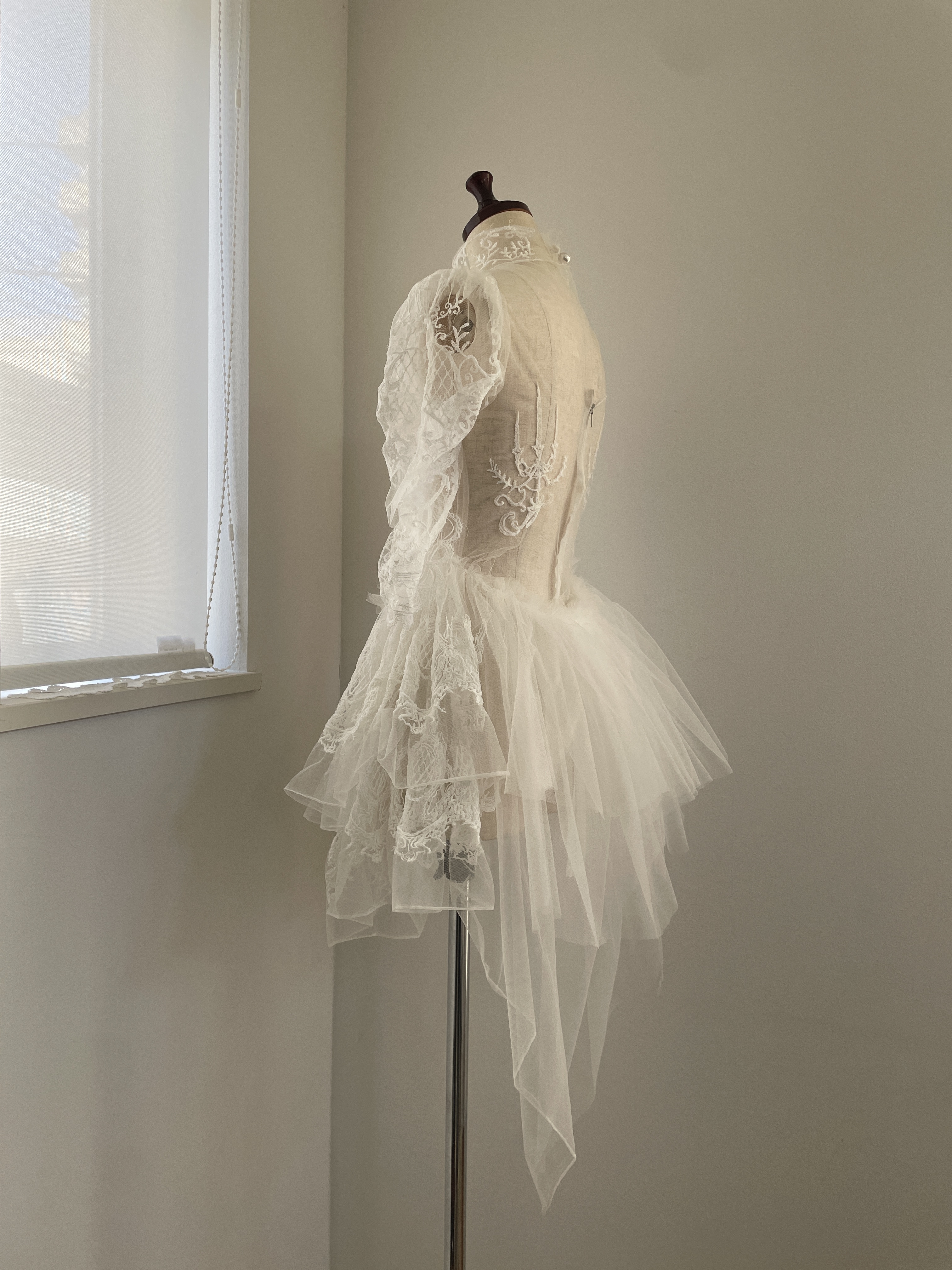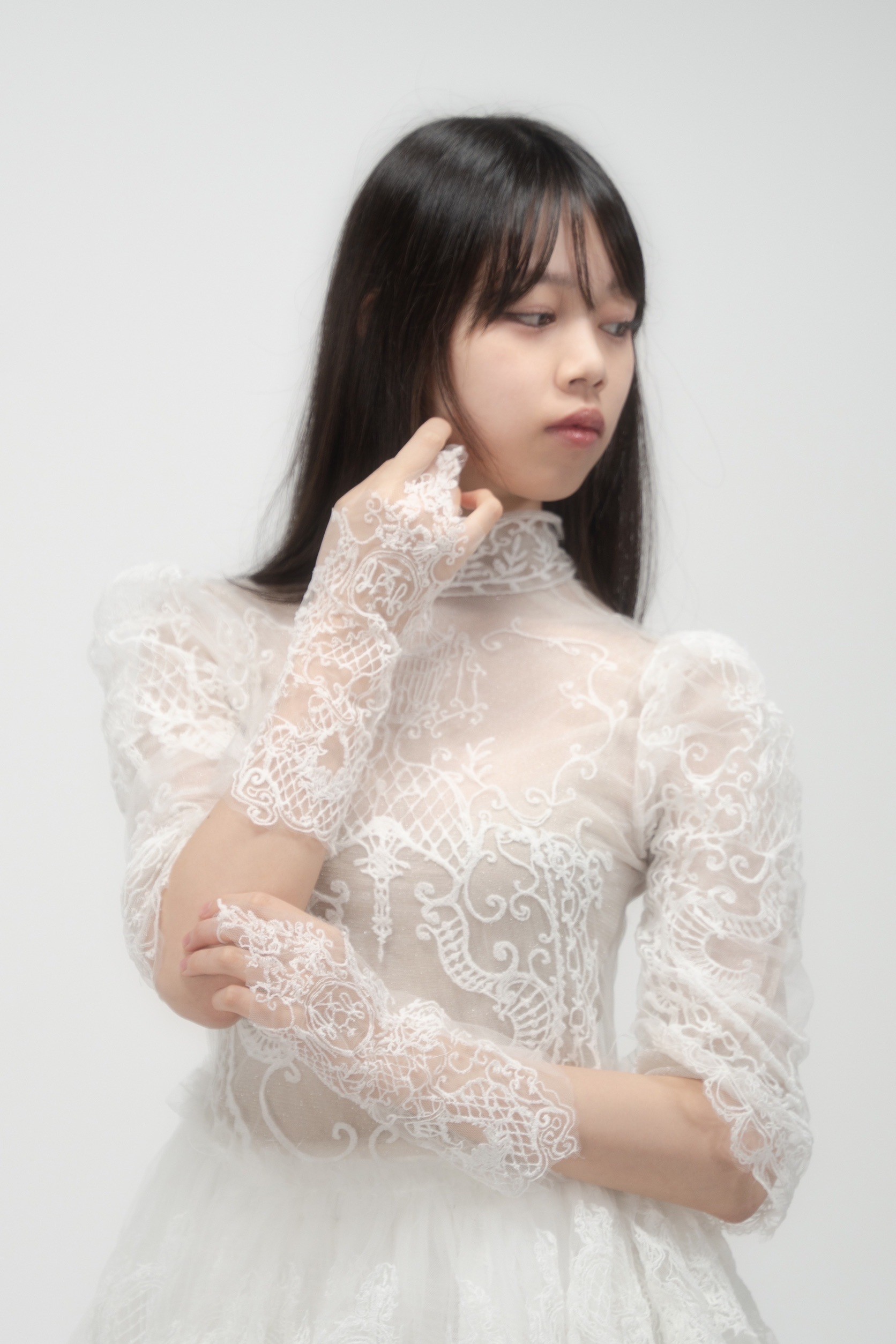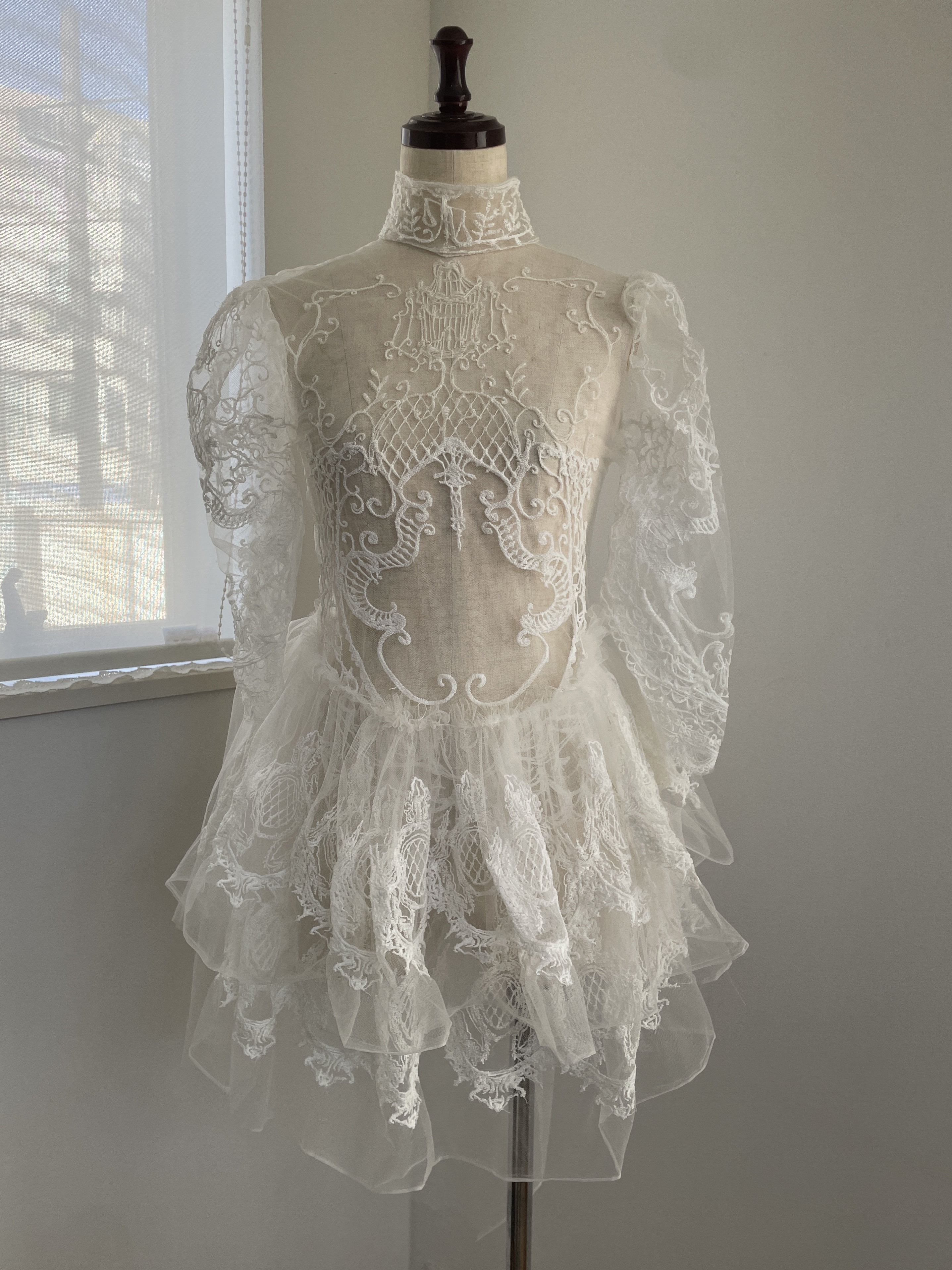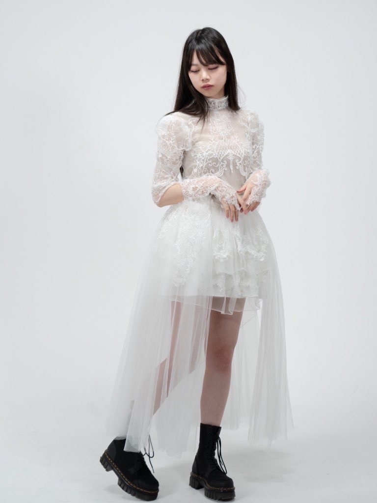 全体にyuzufujiokaオリジナルの刺繍を施したミニドレスです。