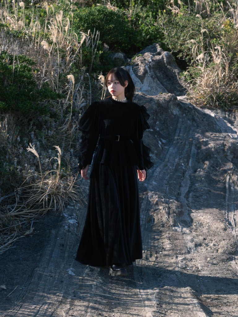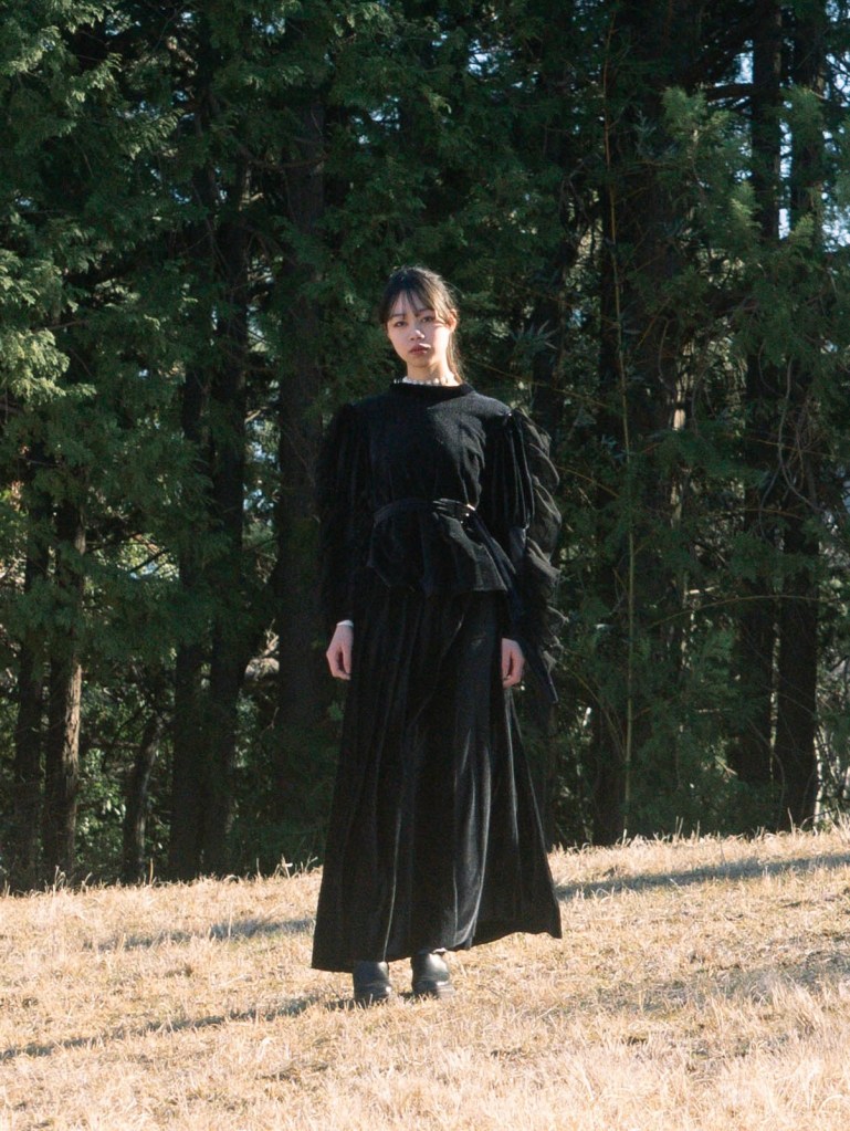 ベロア生地にニードルパンチミシンを空打ちさせることで起きる凹凸を利用したlook。